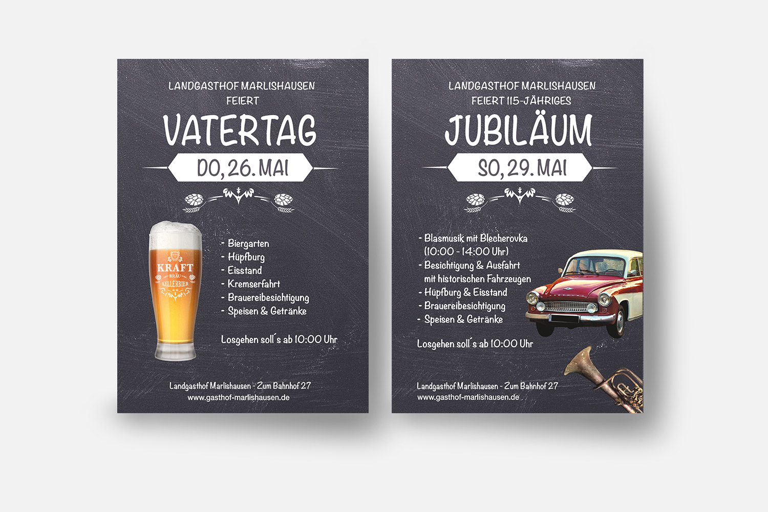Wir gestalten Ihre Visitenkarten, Ihr Briefpapier, Unternehmensbroschüren, Veranstaltungsflyer, Roll-ups, Planen, Speisekarten, Gutscheine